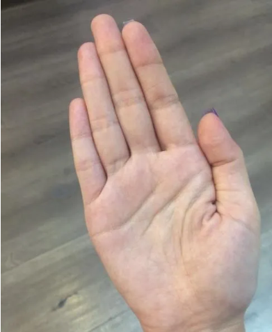 拇指和无名指之间的感觉线断裂啦。